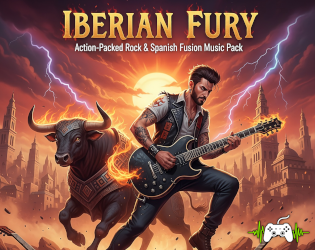 "Iberian Fury, Rock and Spanish Fusion Music Pack" contains 9 loopeable songs for game development. Designed for games with some action but with a strong Spanish atmosphere.